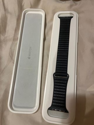 Correa de cuero negra para Apple Watch. - Compatible con modelos de 42, 44 y 45 mm. - Cierre magnético. - Caja incluida original de Apple.