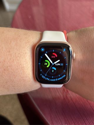 Reloj inteligente Apple Watch con acabado en oro rosa. 32 gb. Salud de batería respecto a la compra 81%. Lo cambio porque me han regalado un garmin. PRECIO NO NEGOCIABLE, ya está ajustado de precio. Incluye cargador y pulseras accesorias