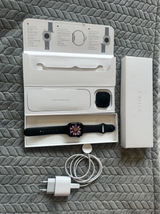 Vendo Apple Watch Series 9 de 45mm color Medianoche por falta de uso. Comprado en enero de 2024. ✅ Estado: Funcionamiento 10/10. 🔋 Batería: Salud al 94% (muy poco uso real, aguanta de sobra todo el día). ✨ Estética: Buen estado general. Tiene algunos microarañazos superficiales en pantalla que no afectan al uso ni se ven con la pantalla encendida. Incluye: • Caja original. • Cable de carga rápida trenzado (USB-C). • Correa deportiva original.