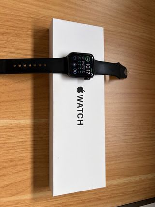 Vendo Apple Watch SE 44 mm (GPS) en perfecto funcionamiento. ✔ Caja de aluminio negro ✔ Resistente al agua (50 m) ✔ Todo funciona correctamente (botones, sensores, batería) ✔ Incluye correa negra ✔️ Incluye 4 correas adicionales La pantalla tiene algunos arañazos superficiales del uso, visibles a contraluz, pero no afectan al funcionamiento ni a la experiencia al usarlo. Lo vendo por cambio de dispositivo. Precio algo negociable. Entrega en mano o envío por Wallapop. Reloj inteligente Apple Watch SE de 44mm con GPS. Se encuentra en buen estado. - Modelo: Watch SE - Color: Negro / Gris espacial - Conectividad
