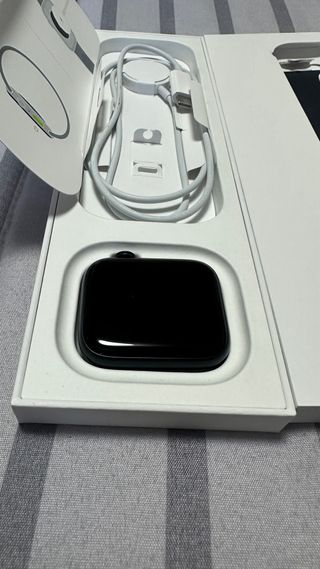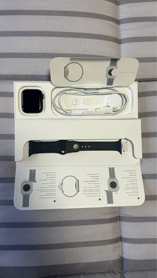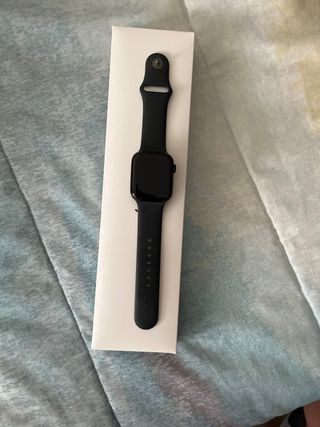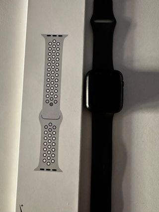 Vendo mi Apple Watch de 44 mm en color negro espacial. Está en buen estado y se incluye la correa deportiva negra. Tiene la batería cambiada y está a 100 - Correa deportiva Nike. - Modelo de 44 mm.