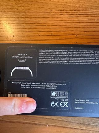 Reloj inteligente Apple Watch Series 7 edición Nike. - 41 mm - Caja de aluminio. - incluye cable de carga y correa negra - Color blanco estrella ( starlight )