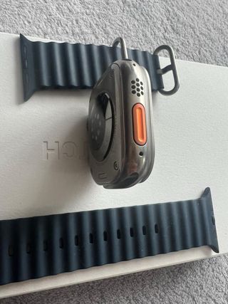Reloj inteligente Apple Watch Ultra 2 en color negro 49 MM. -Tiene 8 meses, aún con garantía oficial -Regalo 2 pulseras de metal negras, 2 de Nylon negra y naranja ,2 de caucho negras. -Correa original negra -Dos protectores de cristal -Caja Original - Caja de aluminio negra - Pantalla Retina. - Resistente al agua.