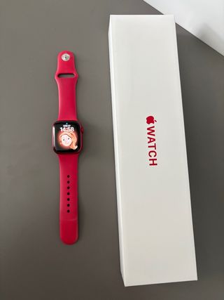 Reloj inteligente Apple Watch Series 7 en color rojo. - Caja de aluminio. - Pantalla Retina. - Correa deportiva.