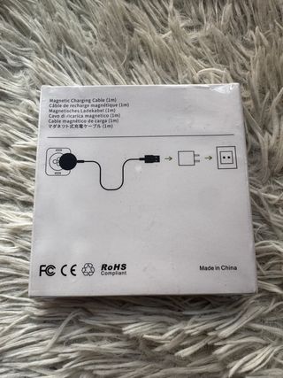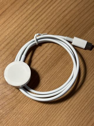 Cable de carga magnética para Apple Watch de 1 metro de longitud. Nuevo y sin estrenar. Conserva el precinto. - Conexión magnética. - Longitud del cable: 1 metro. - Compatible con Apple Watch. - Incluye adaptador de corriente.