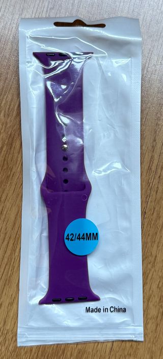 Correa de silicona morada para Apple Watch. - Compatible con modelos de 42/44mm. - Material de silicona. - Color morado intenso. - Fabricado en China. En la segunda imagen se muestra todas las correas que tengo a la venta, por si te gusta otra.