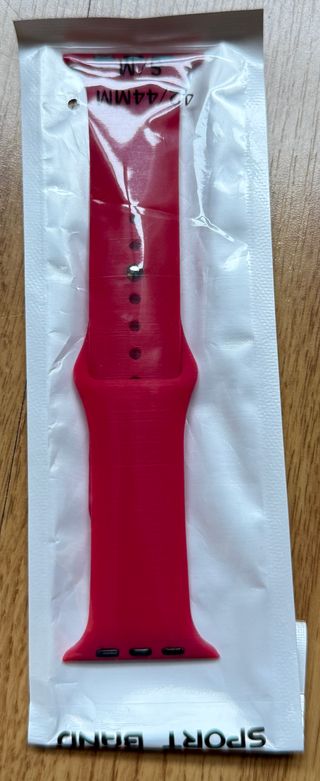 Correa de silicona en color rojo para Apple Watch. - Compatible con modelos de 42mm y 44mm. - Material de silicona flexible y duradero. - Cierre de pincho y ojal para ajuste seguro. En la segunda imagen se muestra todas las correas que tengo a la venta, por si te gusta otra.
