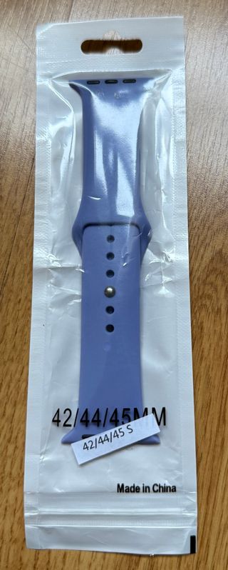 Correa de silicona en color azul para Apple Watch. - Compatible con tamaños 42, 44 y 45 mm. - Cierre con pasador y agujeros para ajuste. - Fabricada en China. En la segunda imagen se muestra todas las correas que tengo a la venta, por si te gusta otra.