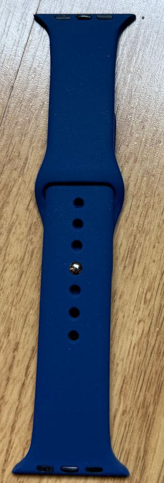 Correa de silicona en color azul oscuro para Apple Watch. Diseñada para un ajuste cómodo y seguro. - Material: Silicona. - Color: Azul oscuro. En la segunda imagen se muestra todas las correas que tengo a la venta, por si te gusta otra.