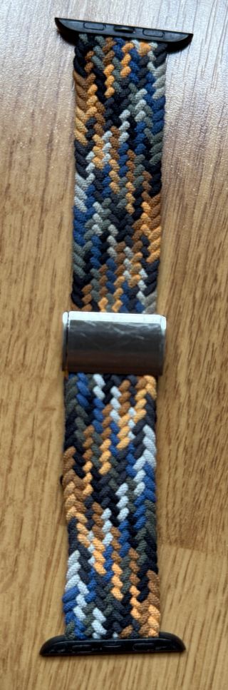 Correa tejida de repuesto para Apple Watch con un diseño multicolor y un cierre metálico. - Material textil trenzado. - Cierre de metal plateado. - Compatible con Apple Watch.