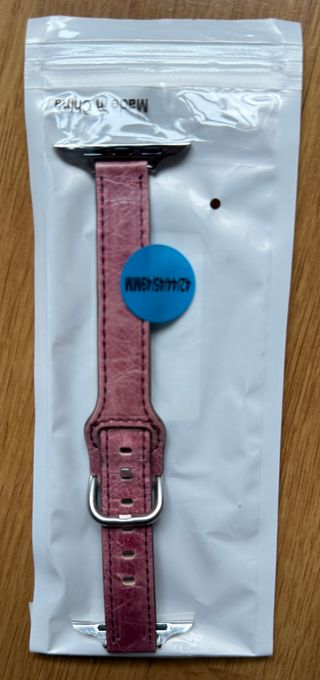 Correa de cuero para Apple Watch en color rosa. Compatible con varios tamaños. - Material: Cuero - Color: Rosa - Cierre de hebilla metálica - Costuras reforzadas - Compatible con modelos de 42, 44, 45 y 49mm En la segunda imagen se muestra todas las correas que tengo a la venta, por si te gusta otra.