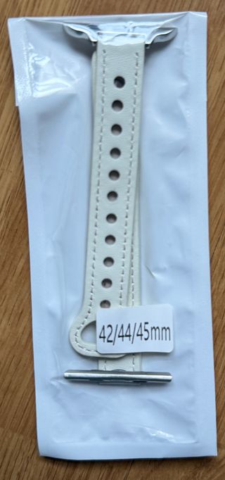 Correa de cuero blanca para Apple Watch. Compatible con modelos de 42, 44 y 45mm. - Material: Cuero. - Color: Blanco. - Cierre metálico. En la segunda imagen se muestra todas las correas que tengo a la venta, por si te gusta otra.