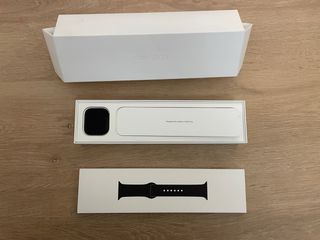 Caja completa de Apple Watch 5 Space Gray Alluminum 44mm. Incluye parte larga de correa negra original. NO INCLUYE EL RELOJ.