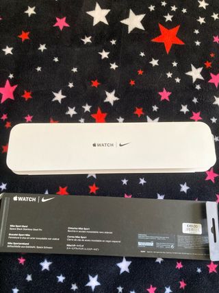 TENGO UNAS 3 más diferentes de la misma talla y vendo todo el lote por 80€ Vendo una banda deportiva Nike para Apple Watch, en color negro espacial. Está impecable y sin usar. - Compatible con Apple Watch. - Material: Acero inoxidable. - Color: Negro espacial.