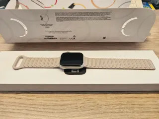 Reloj inteligente Apple Watch Series 9 (GPS) 45MM con la batería al 86% y estéticamente perfecto con correa en blanco estrella y con caja.