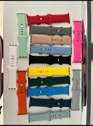 Conjunto de correas de repuesto para Apple Watch en varios colores vibrantes. Diseñadas para un ajuste cómodo y seguro. - Material de silicona suave. - Variedad de colores disponibles: rojo, verde militar, beige, azul claro, negro, amarillo, verde oscuro, azul real, azul marino y gris. - Cierre ajustable con pines. compatible con Apple Watch 38/40/41/42 mm 1=4€ 2=7,5€ 3=10€