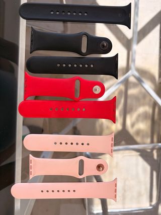 Lote de correas originales para Apple Watch en diferentes colores. una clara que nos és original REGALO - Tres correas de color negro.38MM - Dos correas de color rojo.45MM - Tres correas de color rosa. 40MM 30€ las tres o 13€ cada