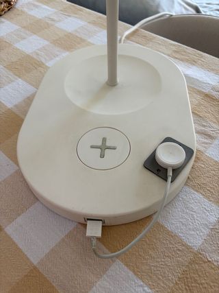 Lámpara de mesa IKEA con base para carga inalámbrica. - Base con cargador inalámbrico integrado. - Puerto USB para carga adicional, en este caso hice un acople para estacion de carga de apple watch. Se puede quitar si se desea. - Diseño moderno y funcional. Algo de desgaste por el tiempo A recoger por el interesado
