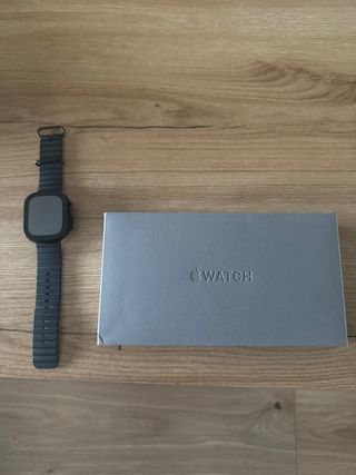 Reloj inteligente Apple Watch Ultra 2 en color negro. Diseño robusto y pantalla grande. Siempre con protector de pantalla. Sin ningún arañazo o golpe. - Caja de titanio. - Correa deportiva Ocean negra con hebilla de titanio ajustable. - Cable para carga magnética. Nunca abierto. - Manual de instrucciones.