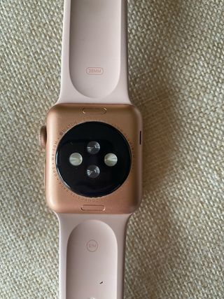 Solo tiene unas ligeras marcas en la parte inferior derecha de la esfera que no afectan para nada a la función ni visión del reloj. Correa, caja y accesorios originales de Apple. Se vende por tener modelo superior.