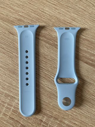 Correa original para Apple Watch de 41mm. - Color azul claro. - Material de silicona. - Cierre de botón a presión.