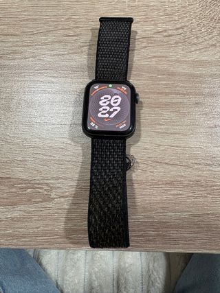 Reloj inteligente Apple Watch SE de 44mm en color gris espacial. - Modelo de 2020. - Correa deportiva negra. -Pequeña grieta en la parte inferior derecha que no afecta al táctil ni su funcionamiento -Lleva funda para que se disimule Se aceptan envíos.