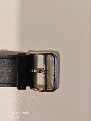 Usado pero en buen estado, sin caja Correa de piel negra para Apple Watch con hebilla metálica. - Diseño elegante y duradero. - Hebilla con logo grabado.