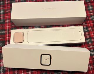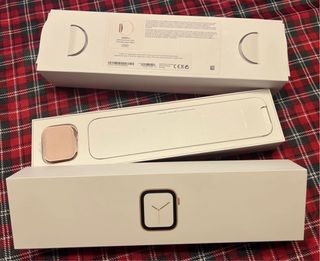 Caja original para Apple Watch Serie 6 en color oro rosa. - Incluye la caja exterior y la caja interior. - Compartimento para el reloj y accesorios.