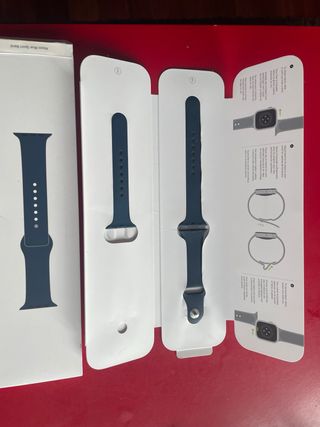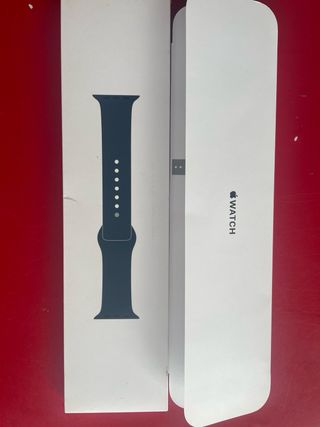 Correa deportiva para Apple Watch de 41mm en color azul marino. Diseñada para un ajuste cómodo y seguro. - Material de fluoroelastómero suave y resistente. - Cierre de pasador y anilla para un ajuste seguro. - Compatible con cajas de reloj de 41 mm. -Trae dos tallas como se puede ver en la primera imagen -Están en perfecto estado y son totalmente originales - Precio en el mercado :49 euros