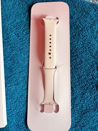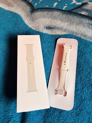 Correa original para Apple Watch en color beige. - Talla S/M. - Diseño elegante y cómodo. - Para reloj de 40mm. A penas unas horas de uso, tuve que comprar otra por la talla.