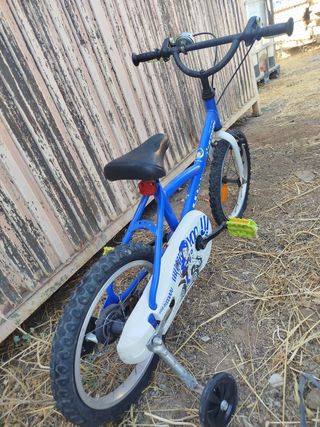 Bicicleta infantil de color azul, ideal para los más pequeños. - Ruedines incluidos para facilitar el aprendizaje. - Diseño divertido con gráficos. - Manillar con puños para un agarre seguro.