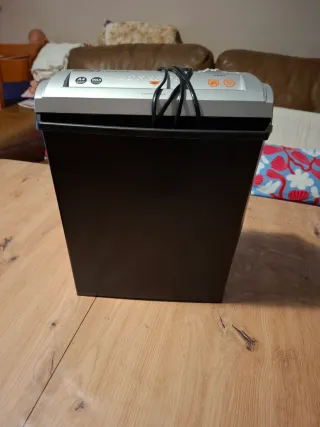 Trituradora de papel en color negro con detalles plateados en la parte superior. - Capacidad para 5 hojas. - Indicador A4 MAX.