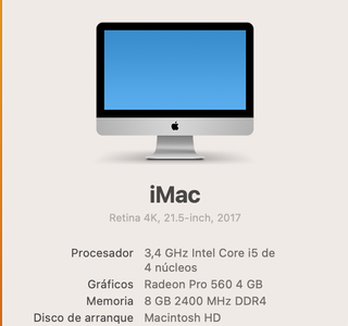 Este iMac cuenta con una pantalla Retina 4K de 21.5 pulgadas. - Modelo de 2017. - Diseño elegante en color plata.