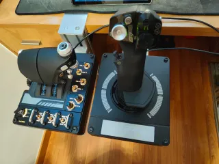 Controlador HOTAS Logitech X-56. Se vende por no usar, palancas de acelerador y joystick + soporte para mesa de aluminio marca Zalem.