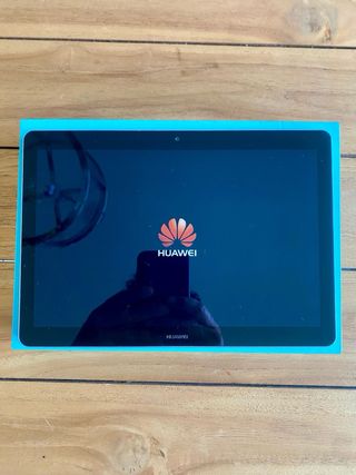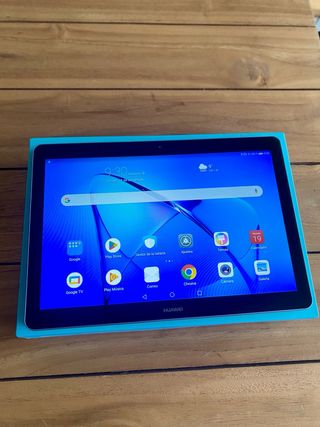 Tablet Huawei en color gris espacial. Usado muy poco, algunas marcas de uso en la parte trasera. - Pantalla de 9.6 pulgadas. - Conectividad Wi-Fi. - Almacenamiento interno de 16 GB. - Cámara trasera de 5 MP y frontal de 2 MP.