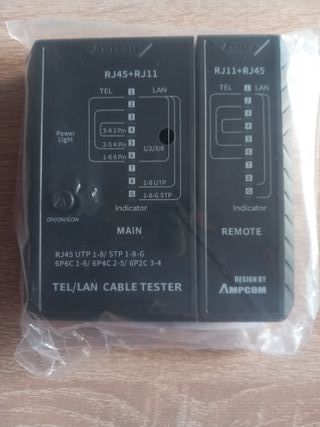 Herramienta esencial para probar cables de red y telefónicos. - Compatible con conectores RJ45 y RJ11. - Diseño compacto y portátil. - Indicadores LED para diagnóstico de conexión.