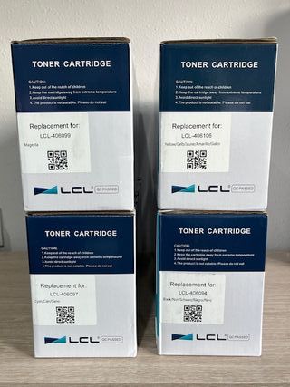 Lote de 4 toners compatibles LCL para impresoras Ricoh Aficio SP-C220S SP-C220N SP-C221N SP-C221SF SP-C222DN SP-C222SF SP-C240DN SP-C240SF. NUEVOS SIN ABRIR. El precio es por el lote de los 4 toners Referencia 406106 Amarillo Referencia 406097 cyan Referencia 406099 Magenta Referencia 406094 Black se realizan envios