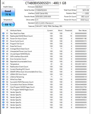 Crucial BX500 SSD 480GB SATA 6Gb/s estado 71%