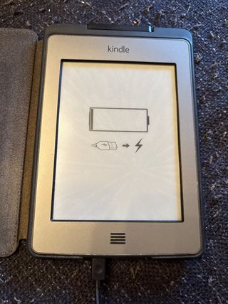 Dispositivo de lectura Kindle en color plata y gris. - Pantalla de tinta electrónica. - Diseño elegante y ligero.
