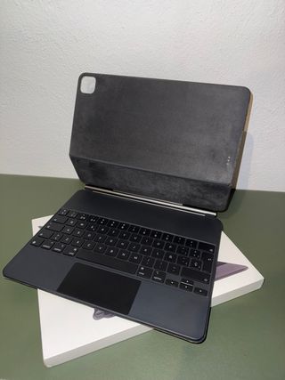 Teclado Magic Keyboard para iPad Pro de 12,9 pulgadas. Es un estado excelente, unos breves desgastes por uso pero ni se aprecian. - Con caja y todos sus papeles. - Color negro. - Compatible con iPad Pro 12,9”. Precio negociable, nuevo 350€.