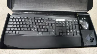 Conjunto de teclado y ratón inalámbricos Logitech. - Teclado ergonómico con reposamuñecas. - Ratón con diseño contorneado. - Color negro y gris. Le falta la conexión USB, pero se puede conectar mediante bluetooth