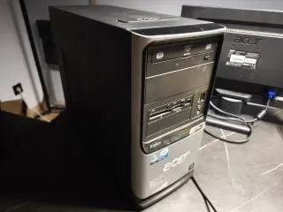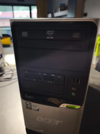 Vendo torre de sobremesa Acer Aspire T660 (modelo PE7L) funcionando correctamente. Procesador: Intel Core 2 Duo E4300 @1.8GHz Memoria RAM: 2 GB Almacenamiento: Disco duro IDE/ATA de 300 GB Lector de CD/DVD: a veces le cuesta abrir, pero funciona bien Wifi con antena de larga cobertura Sistema operativo: Lubuntu 18.04.5 recién instalado, pero con etiqueta licencia windows vista original Pila interna recién cambiada Equipo probado y funcionando correctamente. Ideal para tareas sencillas, ofimática, uso doméstico básico o aprendizaje de Linux. Incluye cable de alimentación. Sólo torre: 35 € Torre + monitor LCD Acer 19 1916A: 55 €