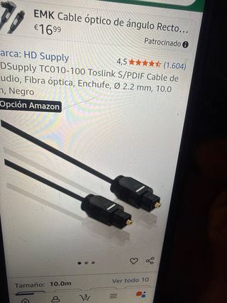 Cable de audio y fibra óptica de 3 metros de longitud. Conectores Toslink S/PDIF. - Conector de ángulo recto. - Diámetro de 2.2 mm. - Color negro.