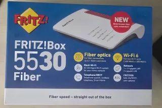 Router FRITZ!Box 5530 para conexiones de fibra óptica. - Conexión directa a la red de fibra óptica. - Incluye SFP GPON y cable de fibra. - Wi-Fi 6. - Sistema Mesh Wi-Fi con otros dispositivos de la marca - VOIP y Funciones de Telefono DECT - Incluye FRITZ!OS con NAS y auto-actualizaciones. Totalmente nuevo.