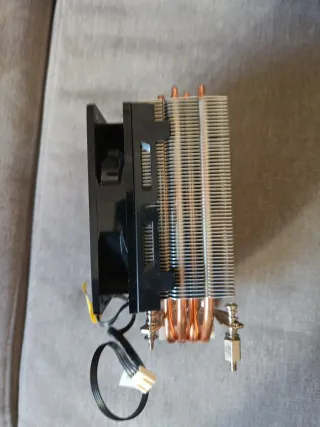 Disipador de calor para ordenador. - Diseño compacto y eficiente. - Tubos de cobre para mejor transferencia de calor. - Ventilador negro. - Incluye cableado para conexión.