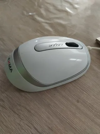 Ratón de ordenador Lexma con conexión USB. - Diseño ergonómico en color blanco y plateado. - Cable USB para conexión. - Rueda de desplazamiento. - Botones de clic.
