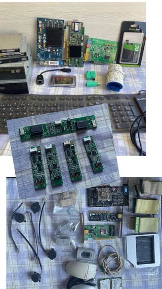 Componentes de informática usados. Están en buen estado, aunque algunos muestran señales de uso. - Incluye lectores/grabadoras de DVD/CD - 2 teclados goma flexible - 1 tarjeta red pc card+Cable + 2 de Red. - 3 tarjetas gráficas -1 tarjeta sonido -3 adaptadores PS2 a USB -1 bateria Li-Polymer 3.8 v/ 3900mah -4 Microprocesadores -2 Ratones PS2 -4 Zumbadoras Impresoras Tickets. -4 Controladoras USB Pantalla Tactil -1 Inverter -6 adaptadores DB9 a RJ45 -1 Lector de Tarjetas -Cables IDE -Laptop 2nd HDD Frame -2 Tarjetas WIFI.