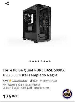 Torre para PC Be Quiet PURE BASE 500DX en color negro y con cristal templado. - Diseño moderno y elegante. - Panel frontal con USB 3.0. - Cristal templado lateral. - Inculye fuente de Alimentacion thermaltake 850 con cable nuevo para nuevas tarjetas graficas 12vhpwr -Incluyo noctua chroma disipador!