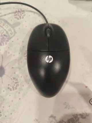 Ratón de ordenador HP con conexión por cable. Su diseño ergonómico lo hace cómodo para el uso diario. - Diseño ovalado. - Logo de HP en la parte superior.