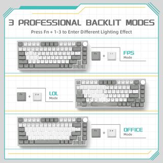 A YINDIAO Ajazz AK820 Teclado Mecánico con Perilla,Diseño 75% ANSI,81 Teclas,Teclado para Juegos con Cable,5 Espumas Absorbentes de Sonido,Hot-swap,Interruptor Lineal,Luz Blanca,para PC,MAC(Gris&Blanco) FUNCIONA BIEN NO INCLUYE CAJA NO INCLUYE CABLE Compatible con cualquier cable tipo C usado 3 meses